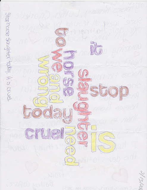 Here's an article that a woman named Jo-Claire Corcoran wrote about the Children's Letter Writing Campaign for RT Fitch's blog. Jo-Claire is a Representative from the Equine Welfare Alliance (EWA) and she is who asked me to go to Washington DC. ~Declan